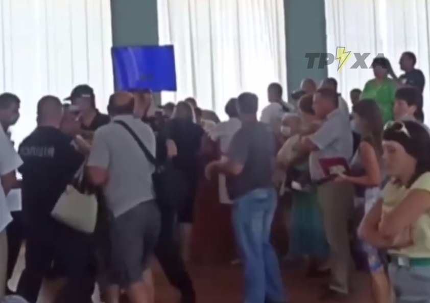 О столкновениях в сессионном зале в полицию сообщили 23 июля, примерно в 11:40. Заявитель сообщил, что около 30 человек пытаются сорвать пленарное заседание. Они повредили пульт на трибуне, поливали водой депутатов и сотрудников полиции, а также повредили ноутбук городского головы.