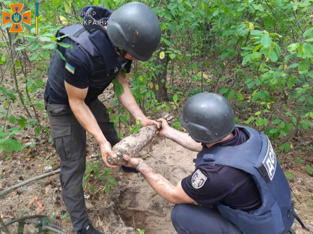 «В г. Изюм на улице Курортной в лесополосе саперы изъяли 49 единиц минометных мин калибром 50 мм, в переулке Фурманова на поле ручную гранату Ф-1. В Новобаварском районе города Харькова на открытой территории — два артснаряда различных калибров.», — говорится в сообщении.