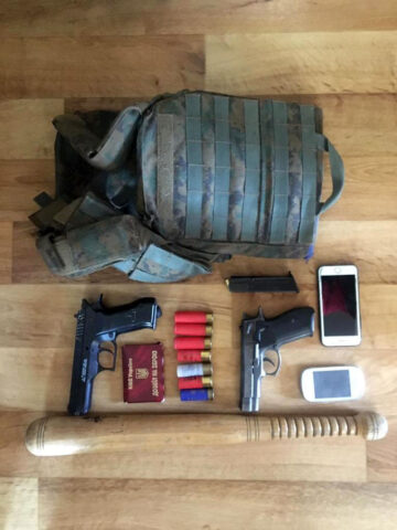 В ходе обысков сотрудники СБУ изъяли крупные суммы денег, черновые записи учета «поборов с предпринимателей», оружие, боеприпасы, а также удостоверения действующих сотрудников Национальной полиции. Действия злоумышленников квалифицируются по статьям 255 (создание, руководство преступной сообществом или преступной организацией, а также участие в ней), ст. 189 (вымогательство), 206 (противодействие законной хозяйственной деятельности) Уголовного кодекса.