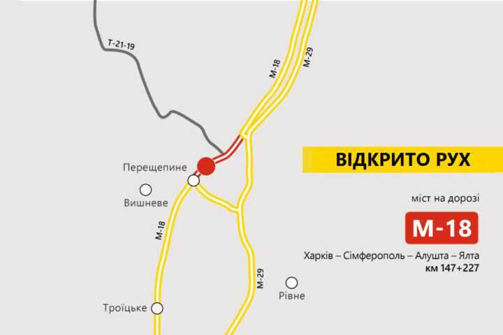 Мост через реку Орель протяженностью 128 погонных метров на дороге М-18 Харьков – Симферополь – Алушта – Ялта км 147+227 открыли для транспорта.