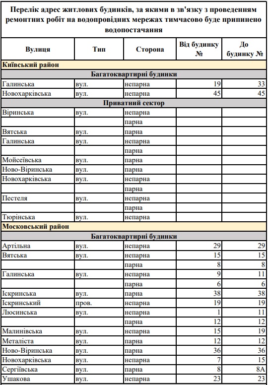 Завтра, 12 октября, с 10:00 в части Киевского и и Московского районов Харькова отключат холодную воду.