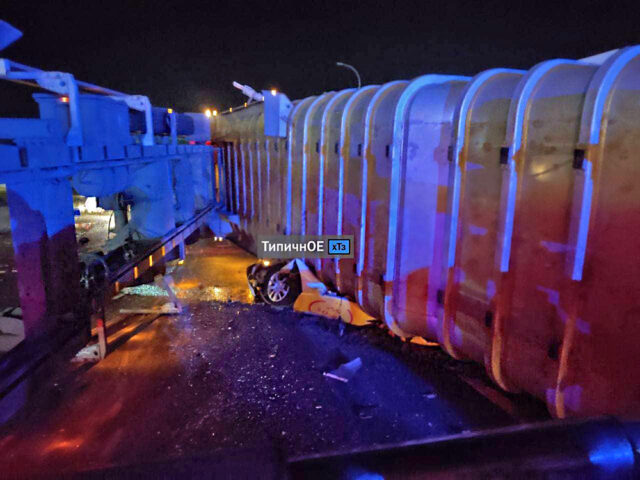 Предварительно установлено, что столкнулись три легковушки и два грузовика, один из которых раздавил автомобиль такси.