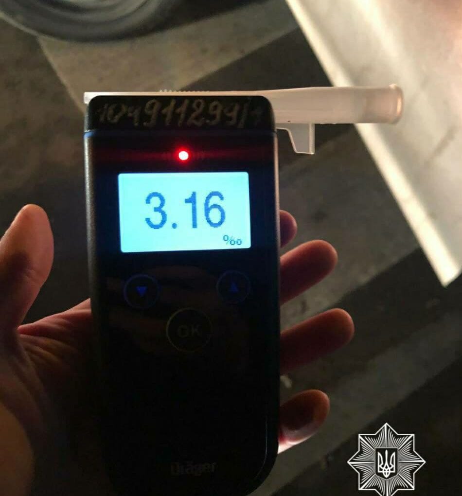 На нарушителя патрульные составили административный протокол по ч. 1 ст. 130 (Управление транспортным средством в состоянии опьянения) КУоАП. Санкция статьи предусматривает штраф в размере одной тысячи необлагаемых минимумов доходов граждан (17 тысяч гривен) с лишением права управления транспортными средствами на срок один год.