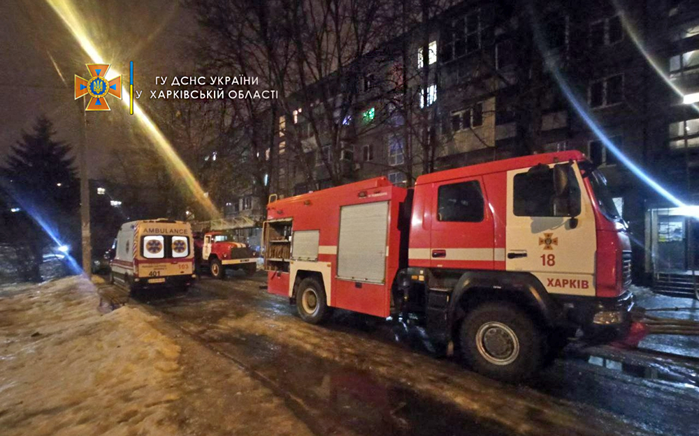 9 января в 21:38 на номер «101» поступило сообщение о пожаре, произошедшем в пятиэтажном жилом доме по адресу: г. Харьков, ул. Гвардейцев Широнинцев, 18.