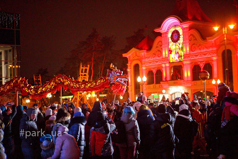В 17:00 на главной сцене начнется конкурсная программа «Год Черного Тигра», а в 18:00 под треск хлопушек и бой барабанов на центральной площади появится 14-метровый китайский Дракон в сопровождении пары львов Ву Ши, которые исполнят традиционный праздничный танец. После этого перед гостями парка выступят танцевальные поп-группы, а в 18:30 на главной сцене начнется дискотека с азиатскими хитами.