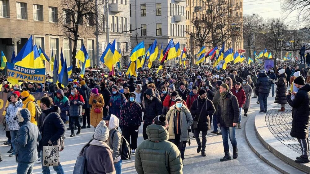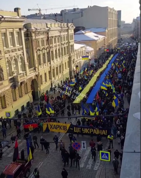 5 февраля на Марше единства в Харькове в колонне, идущей по улице Сумской участники шествия развернули флаг Украины длиной несколько десятков метров. Впереди колонны участники несли баннер с надписью: «Харьков — это Украина».