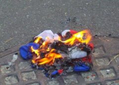 Враг вывесил трехцветную тряпку на флагштоке, установленной на крыше дома.