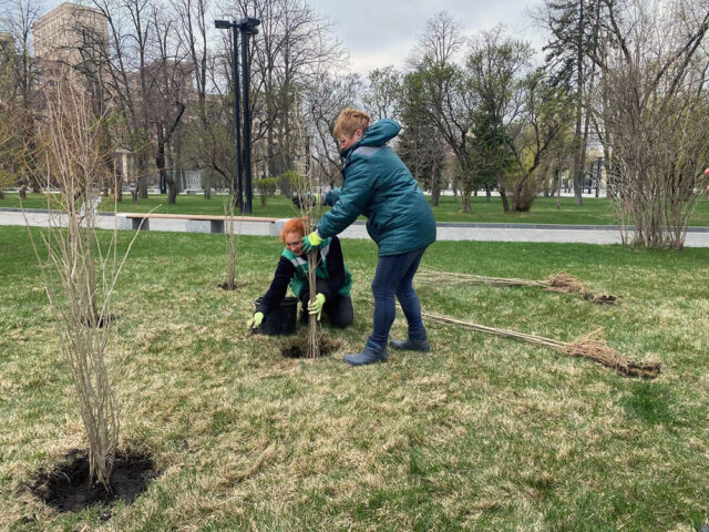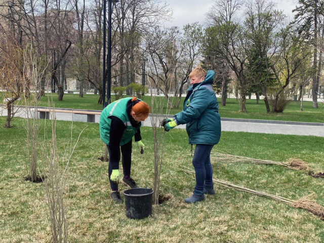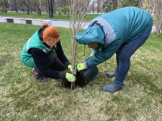 Подаренные растения высадили у сухого фонтана, любимого места отдыха харьковчан.
