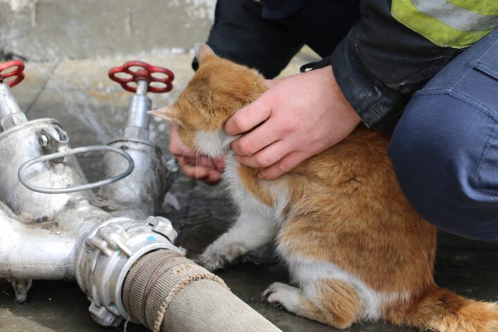 23 апреля во время тушения пожара в Киевском районе Харькова бойцы ГСЧС спасли рыженького котика.