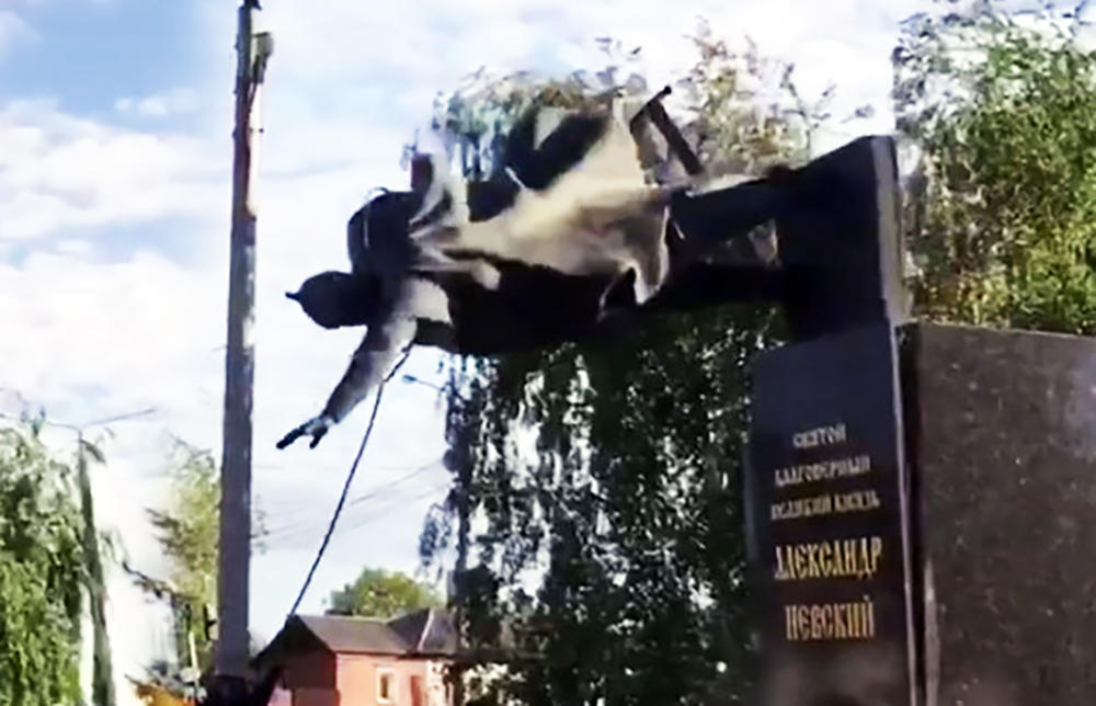 Утром сегодня, 19 мая, в Харькове, на углу Салтовского шоссе и улицы Академика Павлова, наконец-то сбросили с пьедестала памятник печально известному русскому князю-изменнику и монголо-татарскому прихвостню Александру Невскому.