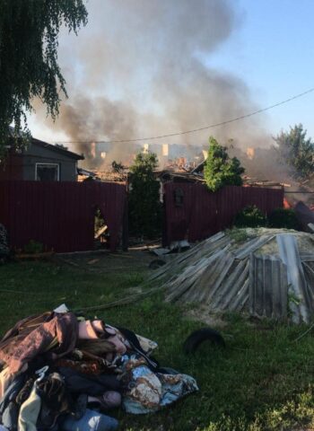 «Горели жилой дом и гараж на площади около 80 кв.м., летняя кузница и хозяйственное сооружение другого имения на площади 120 кв.м., а также квартира в жилой 9-этажке. Кроме того, в результате обстрела были частично повреждены балконы с 1-го по 5-й этажи жилого 9-этажного дома», — рассказали спасатели.