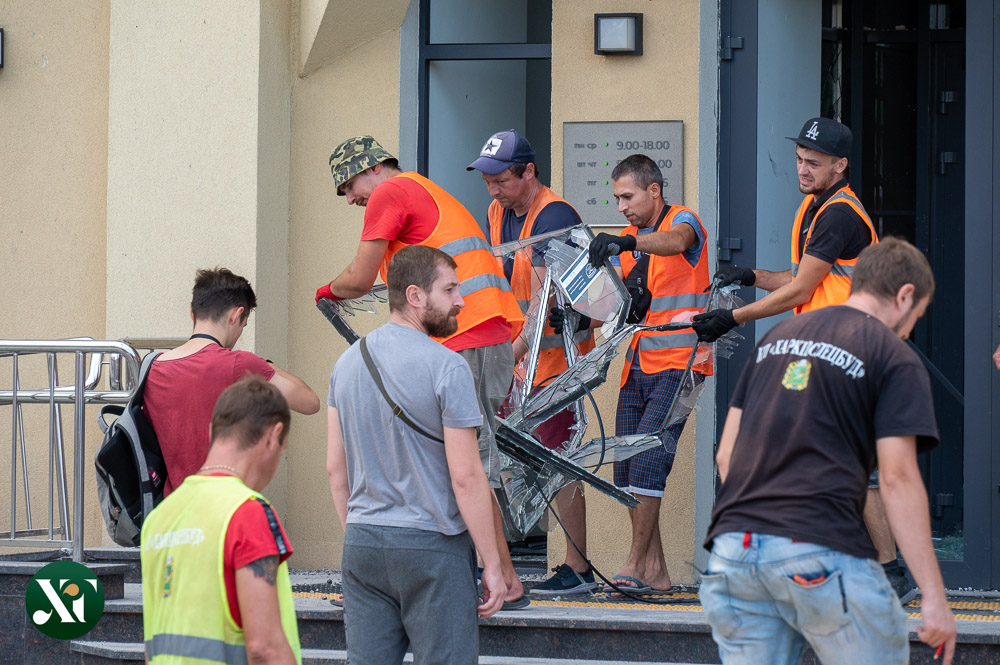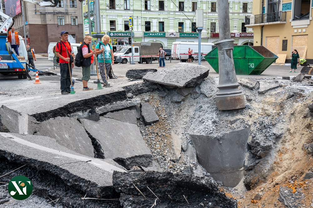 Как сообщает корреспондент Харків Times с мест взрывов, одна из ракет взорвалась на Павловской площади, на проезжей части перед Домом недвижимости. В доме, который построен по проекту Бориса Корниенко в 1912 г. и является памятником архитектуры, и близлежащих домах разбиты окна и витрины.