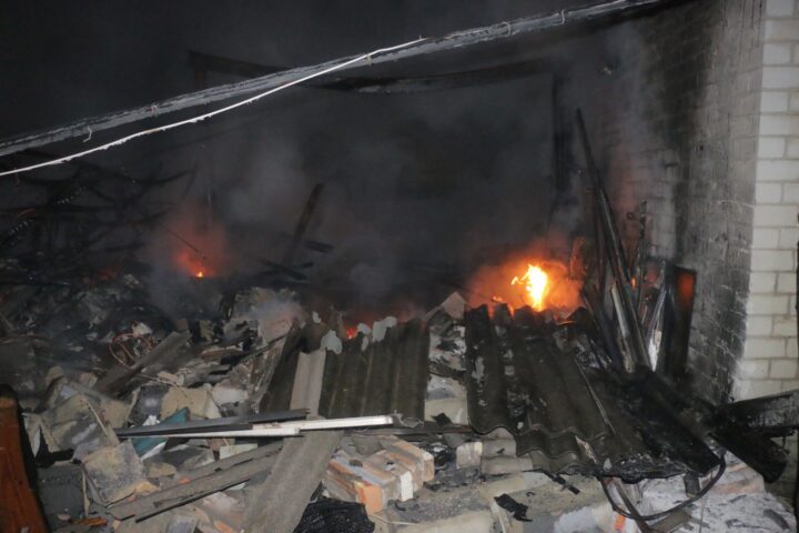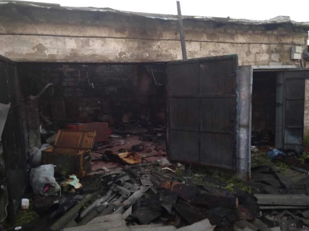 Мощные взрывы в городе было слышно около 21:30. Из-за обстрела загорелись семь гаражей на площади 200 кв.м. 25 спасателей с привлечением четырех единиц спецтехники потушили пожар.