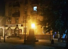 Вражеские боеприпасы разрушили тротуар и уничтожили современное автономное освещение.
