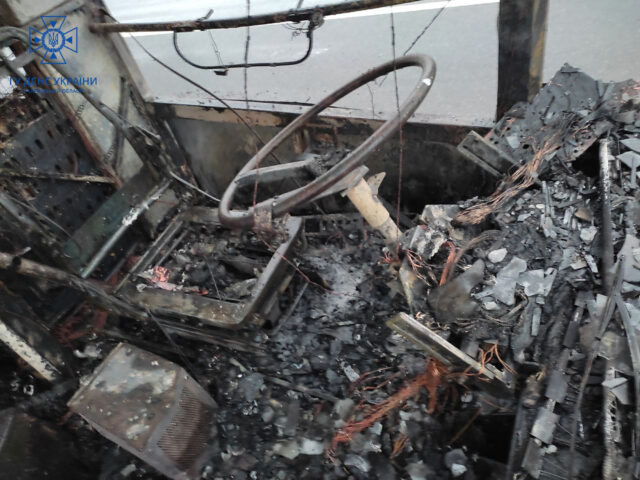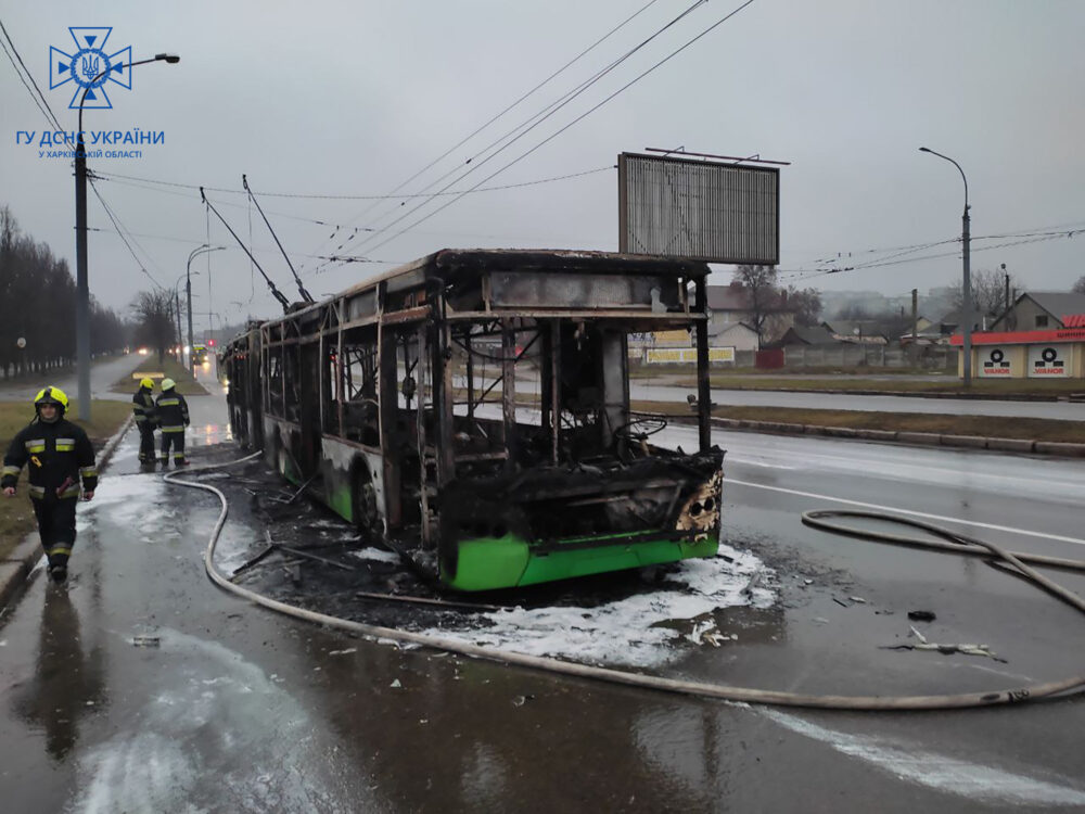 Утром 11 декабря в Харькове по проспекту Льва Ландау вспыхнул троллейбус. К моменту приезда спасателей пламя охватило почти всю машину.