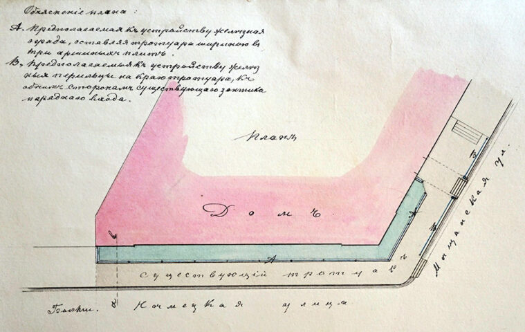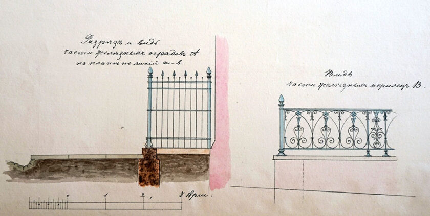 С весны 1885 года все желающие сделать себе ограждения или палисадники начали обращаться в городскую управу с проектом. Одним из первых был купец Исаак Нусинов, который обратился к архитектору Гиншу, чтобы он разработал проект ограждения возле своего дома на углу Немецкой и Мещанской улиц. Кроме ограждения возле дома, ему пришлось делать кованую ограду между улицей и тротуарами.