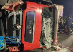 Почти два года назад на Харьковской окружной грузовик МАN с полуприцепом, которым управлял обвиняемый, перевернулся на такси, убив двух взрослых и ребенка.