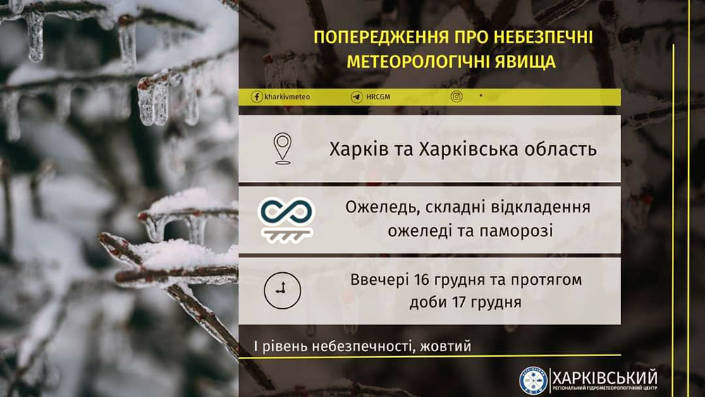 Как сообщал Харків Times, 14 декабря жителей Харькова и области предупреждали об опасности из-за ледяного дождя, который почти парализовал дороги Харьковщины ближе к вечеру.