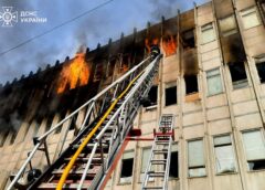 Читать дальшеСпасатели тушат 2 000 кв. метров после попадания русской ракеты в Харькове (фото)