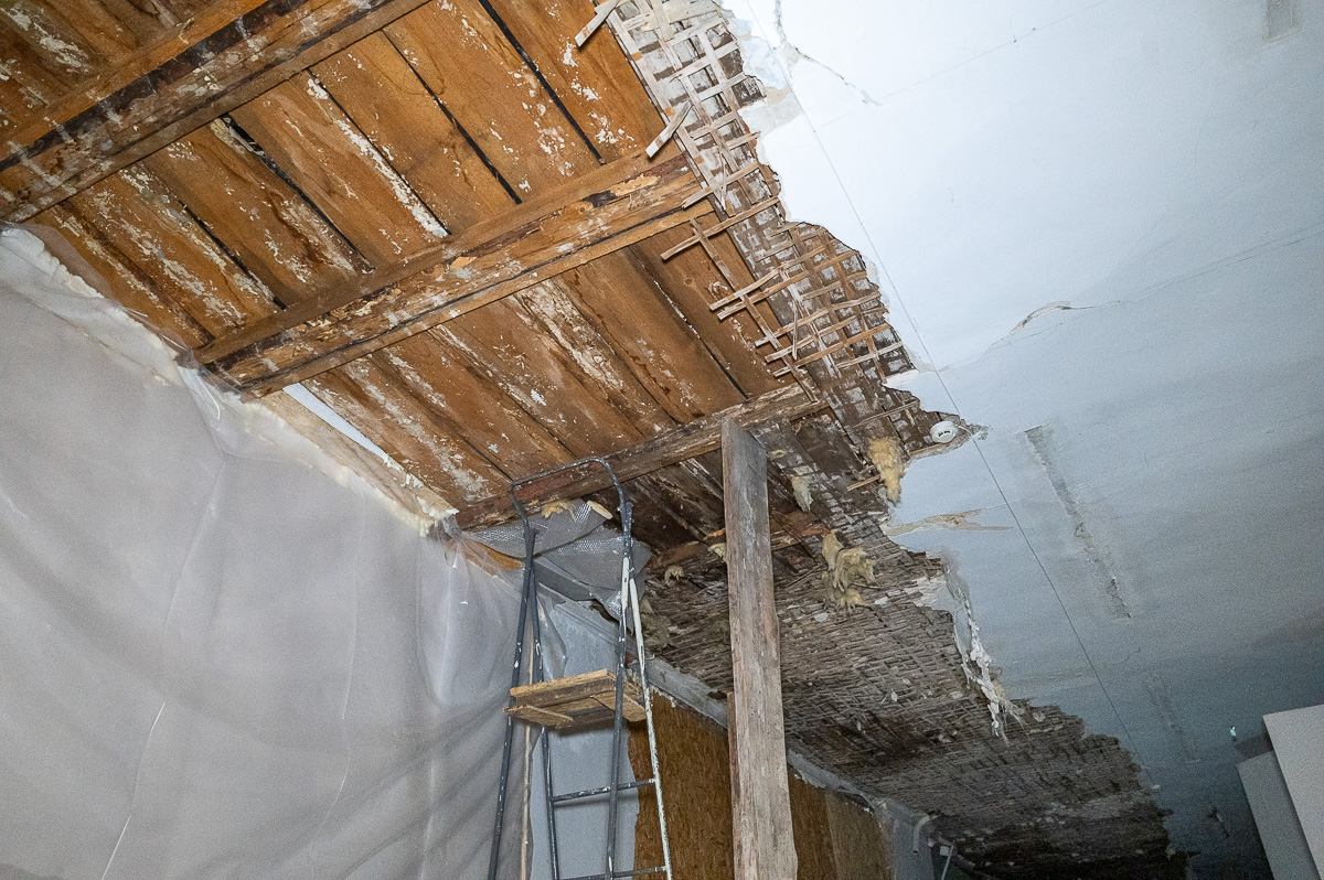 «Обвалилась несущая балка на потолке.И если мы не отремонтируем крышу, не заменим эту балку, то не сможем поставить там окна», — отмечает Абраменко.