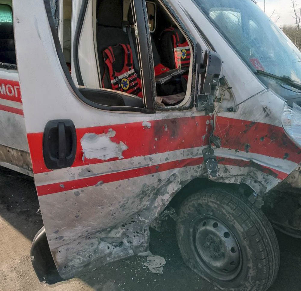 Утром сегодня, 3 февраля, во время транспортировки пациента из прифронтового Купянска Харьковской области бригада экстренной медицинской помощи попала под удар русского дрона. К счастью, никто не пострадал. Был поврежден автомобиль экстренки.