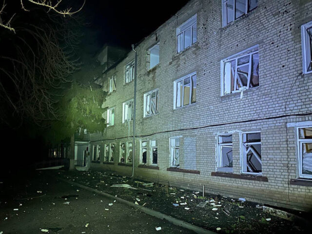 Два удара были нанесены по территории Золочевской больницы. Один беспилотник попал по автопарковке рядом с админзданием, второй — в третий этаж больницы. Произошел пожар площадью 10 м кв. К счастью, обошлось без жертв и пострадавших. На момент обстрела в укрытии больницы находилось 17 человек.
