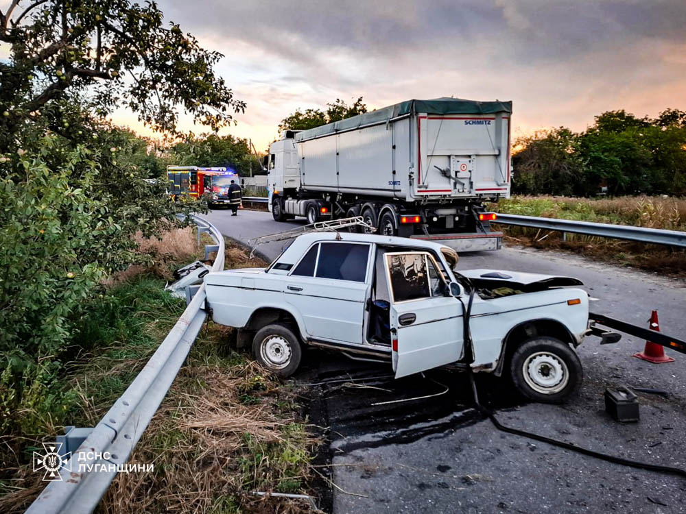 Водитель легкового автомобиля был деблокирован спасателями с помощью специального инструмента и передан работникам экстренной медицинской помощи. Водитель легковушки и его 45-летний пассажир с телесными повреждениями доставлены в харьковскую больницу.