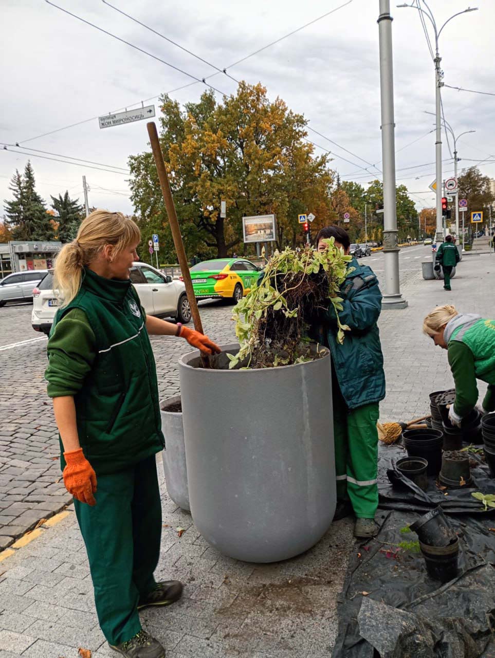 «Из клумб и вазонов коммунальщики убирают однолетние растения (колеус, аспарагус, хлорофитум, традесканция, герань)», – говорится в сообщении.