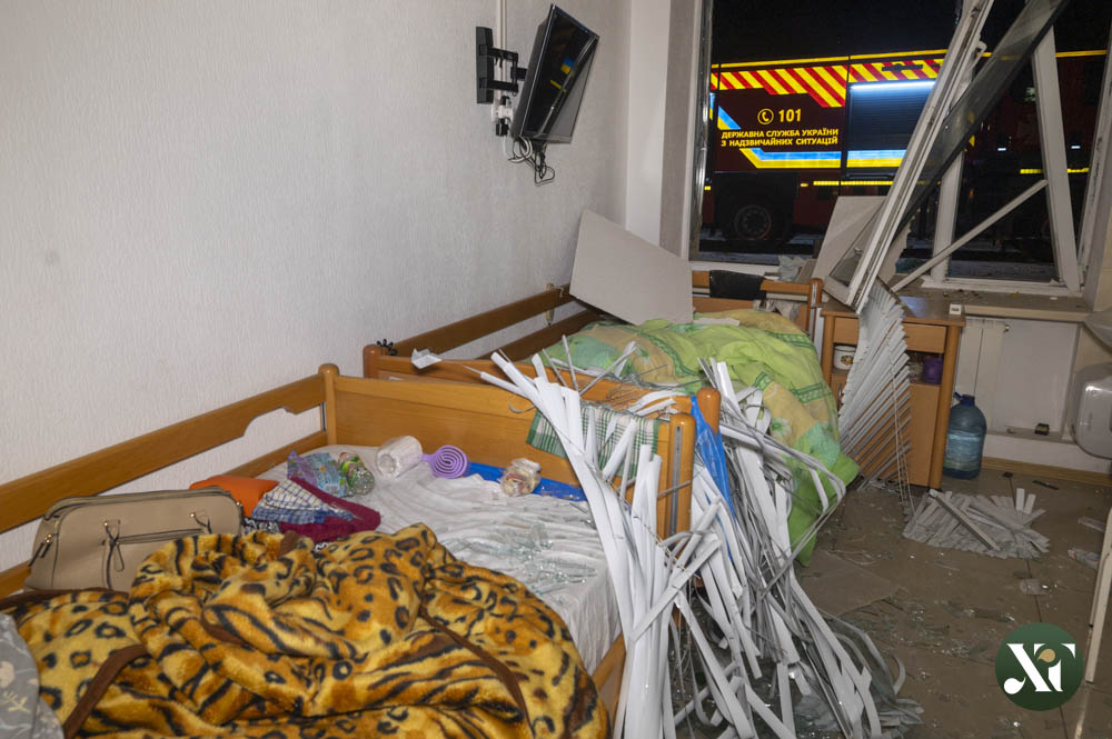Вечером сегодня, 13 октября, по Харькову попали три русских управляемых авиабомбы. Одна из них ударила по территории одной из городских больниц. В результате взрывной волны и пожара разрушено хозяйственное здание. Есть раненые среди больных, в основном это порезы стеклом от разбитых окон.