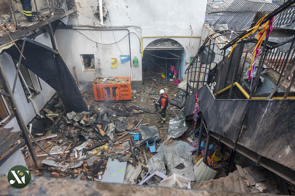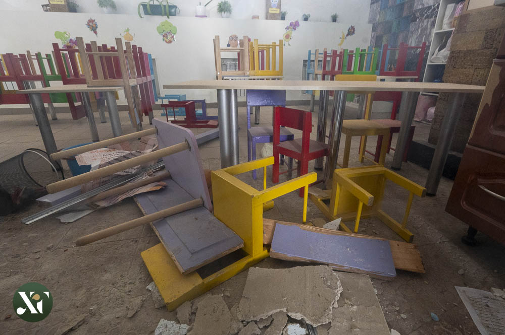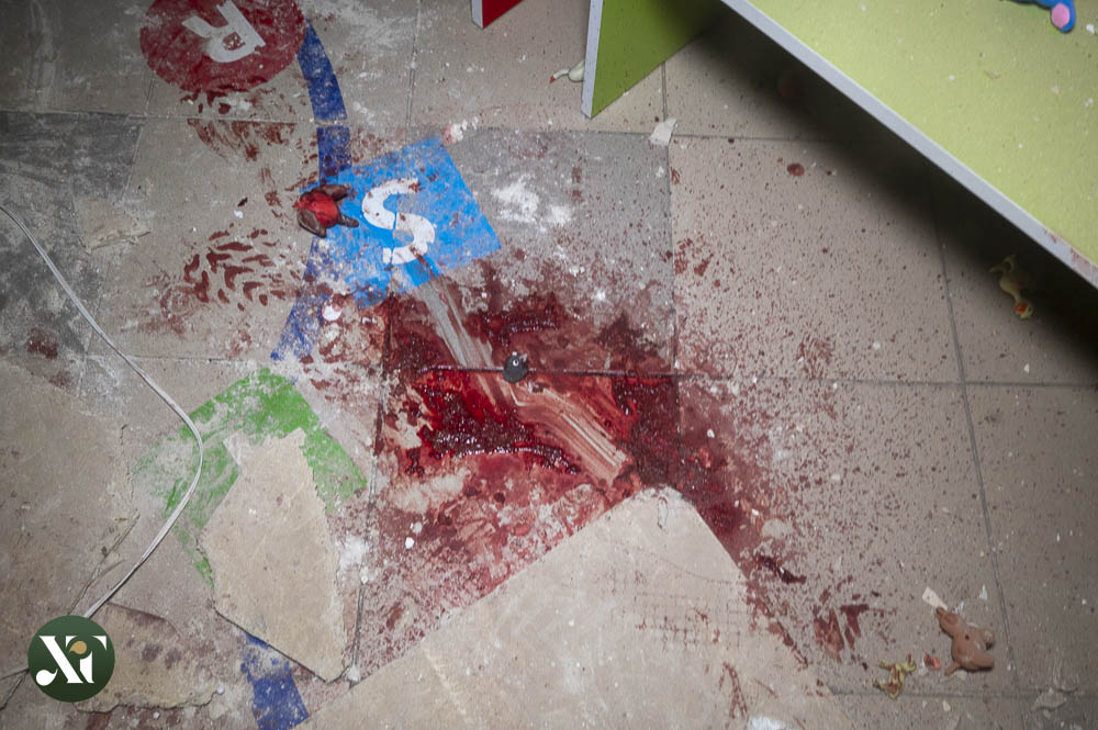 Корреспондент Харків Times был сегодня на месте попадания русских беспилотников и собственными глазами видел то самое «офисное помещение» – с детскими столиками и стульчиками, с детскими рисунками на изуродованных стенах. Видел и мотор от русского беспилотника, оставшийся лежать на галерее второго этажа исторического здания.