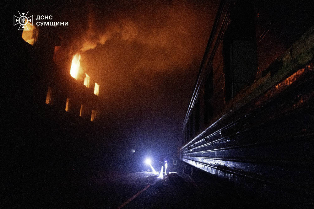В Сумах враг ударил по пассажирскому депо — повреждены и уничтожены другие хозяйственные помещения компании, а также подвижной состав. Для перевозки пассажиров поезда №779/780 Сумы-Киев оперативно подали подменные вагоны. Поезд отправился по графику.