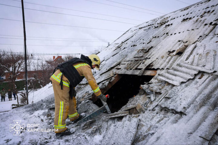 Ориентировочно в 12:30 удар пришелся по крыше частного жилого дома в Немышлянском районе города. Без пострадавших.