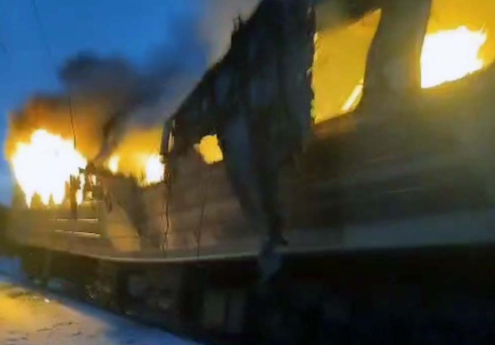 В пассажирском поезде, по которому сегодня, 27 января, около 16:30, ударили три русских дрона вблизи станции Барвенково в Чугуевском районе Харьковской области, пострадали два вагона. Один полыхнул полностью, другой – частично.