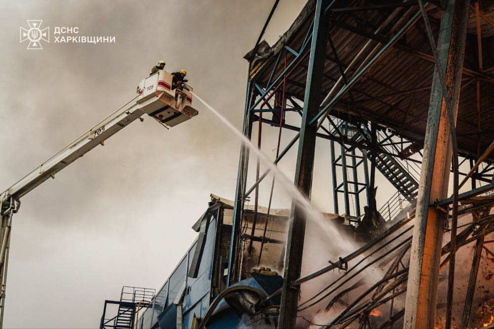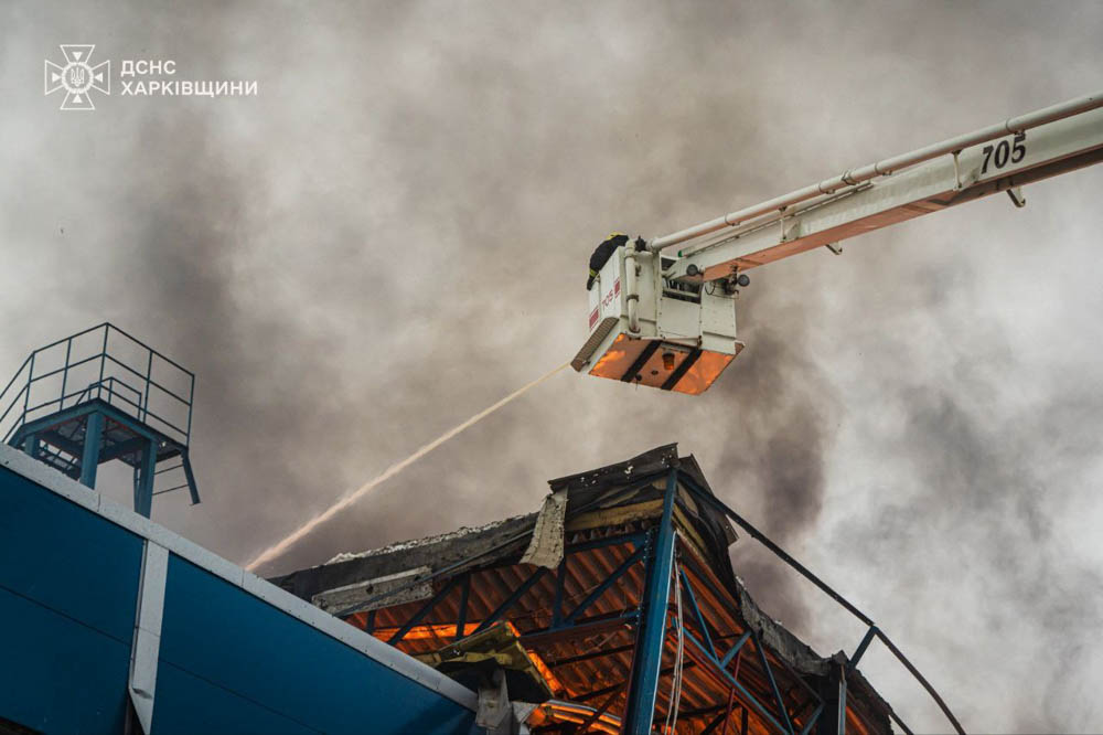 Российские войска нанесли ракетный удар по неработающему складскому зданию гражданского предприятия в пригороде Харькова. Вследствие этого возник масштабный пожар площадью более 5000 кв. м.