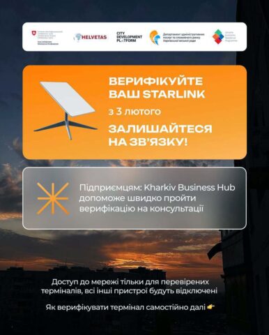 Центр возможностей, поддержки и развития бизнеса Харькова и Харьковской области Kharkiv Business Hub предоставляет предпринимателям консультации по верификации Starlink.