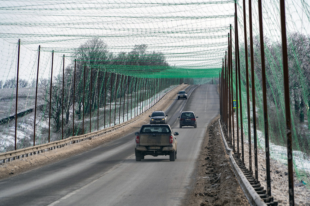 В Харьковской области дорожники вынуждены местами снимать натянутые над дорогами антидроновые сетки, поврежденные в результате ледяного дождя, намерзания льда и прохождения по дорогам негабаритно высокого автотранспорта.