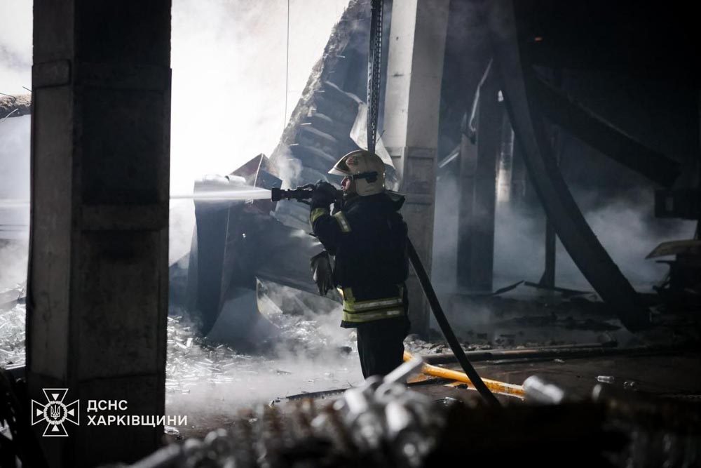 В результате удара произошли разрушения и пожар складского здания одного из гражданских предприятий. Площадь возгорания составила около 3000 кв. м.