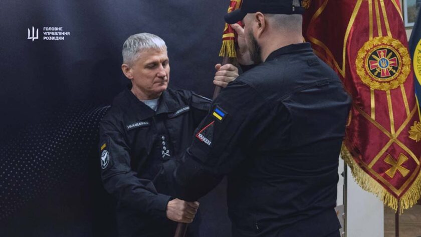 Боевое знамя воинам «Кракена» вручил начальник ГУР МО Украины генерал-лейтенант Олег Иващенко, пожелавший им «крепости духа в дальнейшей борьбе за волю Украины».