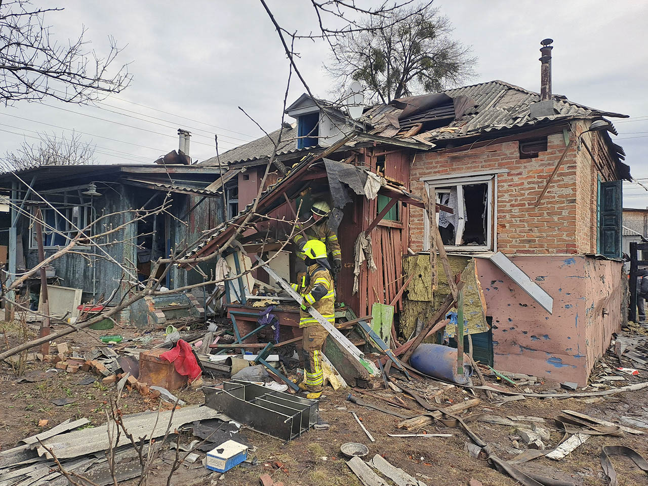 В результате удара на месте вспыхнул пожар, который уже потушили спасатели ГосЧС. По данным ХОВА, взрывом были повреждены соседние частные жилые дома.