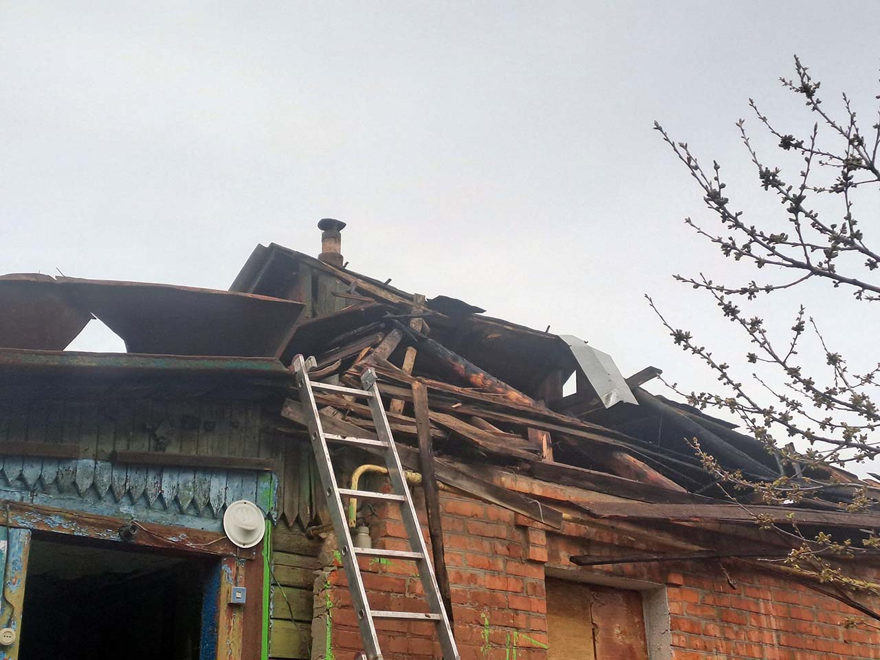 На месте второго удара вспыхнула крыша частного жилого дома на площади 18 кв. метров.