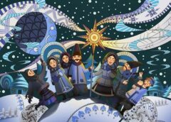 Уже зажглась первая звезда, символизирующая Звезду Вифлеемскую.