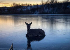 Когда к месту происшествия прибыли спасатели, животное уже выбилось из сил, постоянно пытаясь выбраться на тонкий лед.